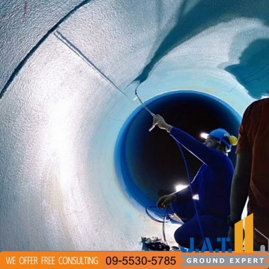 งานพ่นสารโพลียูเรีย PU Deep Grouting PU DEEP GROUTING : คือการอัดฉีดสารโพลียูรีเทนลงไปยังชั้นดินอ่อน เพื่อปรับปรุงสภาพดินและเพิ่มความสามารถในการรับน้ำหนักให้แก่ชั้นดิน โดยสารโพลียูรีเทนจะขยายตัวบดอัดชั้นดินที่ระดับความลึกนั้นๆ ให้แน่น และแทนที่ช่องว่างหรือโพรงในชั้นดิน หลักการปรับปรุงสภาพชั้นดินอ่อนด้วยวิธี PU Deep Grouting ด้วยความสามารถในการขยายตัวของสารโพลียูรีเทน 10 เท่า ทำให้สามารถเข้าไปแทนที่ช่องว่างในชั้นดิน และ บดอัดดินรอบข้างให้มีความหนาแน่นมากขึ้นการแข็งตัวที่รวดเร็วภายในเวลา 10-15 วินาที เป็นอีกหนึ่งคุณสมบัติเฉพาะตัวของสารโพลียูรีเทน ที่ทำให้สามารถควบคุมการกระจายตัวของสารโพลียูรีเทนให้อยู่ในพื้นที่ที่ต้องการได้ ลดผลกระทบเนื่องจากการบีบตัวคายน้ำของดิน และลดการขยายและหดตัวของดิน ประเภท Cohecive Soil โพลียูรีเทนสารสามารถแทรกและเพิ่มการยึดเกาะระหว่างเม็ดดิน ประเภท Non Cohecive Soil สารโพลียูรีเทนจะแทนที่ช่องว่างหรือโพรงในชั้นดิน ชั้นดินอ่อนสามารถปรับปรุงให้ดีขึ้นได้ด้วยการเพิ่มแรงต้านทานเฉือน ซึ่งวัสดุจะทำการฉีดที่ระดับความลึกลงไปในพื้นที่ของกระเปาะแรงดัน (pressure bulb) ณ จุดที่จะได้รับผลจากแรงเฉือนของน้ำหนักของโครงสร้างด้านบน