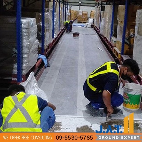 งานเกร้าท์ปิดโพรงใต้ฐานเครื่องจักร งานเกร้าท์ปิดโพรงโรงงาน ชลบุรี งานเกร้าท์ปิดโพรงโกดัง ชลบุรี งานซ่อมพื้น ด้วยระบบอิพ็อกซี่เซลเลเวลลิ่ง Epoxy self leveling โรงงานในนิคมอมตะนคร  5 เหตุผล ทำไมจึงต้องใช้บริการซ่อมพื้นทรุดเอียงพื้นแตกร้าวกับบริษัท เจ.เอ.ที. กราวด์ เอกซ์เพิร์ท จำกัด ประสบการณ์ในการซ่อมปรับประดับพื้นทั้งในและต่างประเทศมากกว่า 10 ปี ตรวจวิเคราะห์สาเหตุพื้นทรุดเอียงแตกร้าว และมีวิธีแก้ปัญหาให้ตรงจุด บริการซ่อมแซมแบบครบวงจร โดยช่างผู้ชำนาญการมีเครื่องมือเฉพาะด้านรวมถึงวัสดุและเคมี มีวิศวกรวิศวกรรมโยธา ดูแลควบคุมงานตั้งแต่เริ่มต้นจนจบเคสอย่างรวดเร็ว มีการบริหารจัดการ งานซ่อมอย่างเป็นระบบสอดคล้องกับระเบียบเงื่อนไขของแต่ละสถานที่โดยรบกวนเวลาและพื้นที่สัญจรน้อยที่สุด แก้ปัญหาจบไม่ยืดเยื้อเรื้อรัง แก้ปัญหาได้อย่างถาวรใช้งานหรืออยู่อาศัยได้อย่างปลอดภัยและสบายใจ พร้อมรับประกันคุณภาพงานทุกเคส